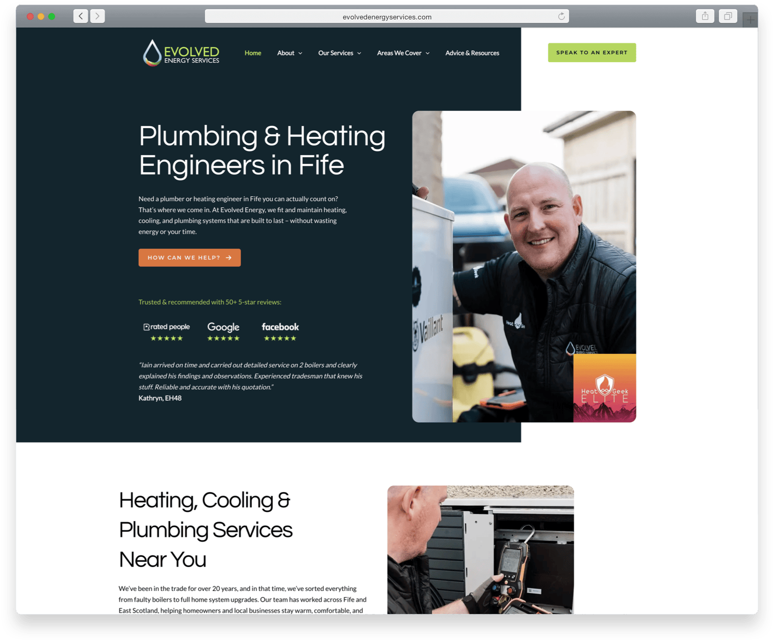 Evolved Energy Services is a growing energy solutions business and a proud partner of Heat Geek, the UK’s leading low-carbon heating network. While they already had a reputation for quality, their old site focused purely on aesthetics and neglected SEO, meaning they weren’t being found by homeowners and businesses searching for heating and energy services online. They needed a website that reflected their Heat Geek accreditation, built trust with new customers, and provided a strong foundation for generating leads through search.